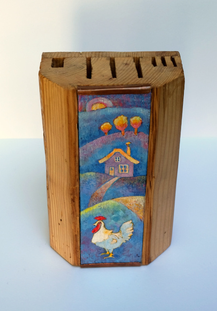 Knife block has slots for 5 knives or 4 knives and a pair of scissors.